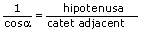 Observeu a l'escena que quan el catet adjacent val 1, la hipotenusa és igual a la inversa del cos
