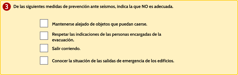 - Hay cuatro posibilidades para la respuesta correcta (la medida no adecuada) y las otras tres se eligen de entre seis.