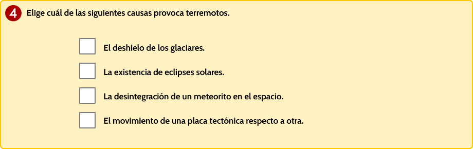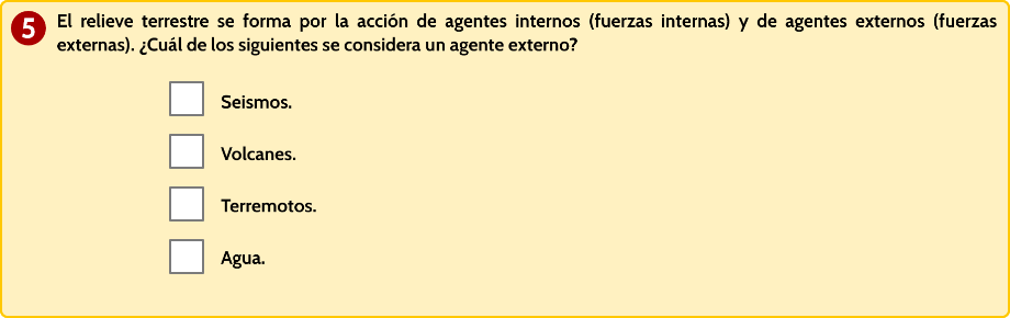 - Hay dos posibilidades para la respuesta correcta y las otras tres se eligen de entre cinco.