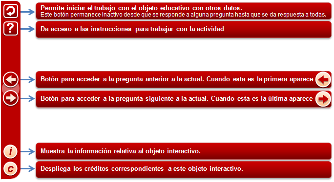 Barra de herramientas: En esta barra lateral se incorporan diversos botones que permiten la navegación entre las preguntas y acceder a la información general y particular de cada objeto.