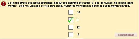 Al responder una pregunta se refleja la respuesta y se oferta un botón de comprobación: