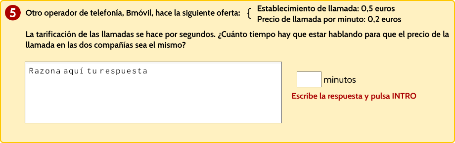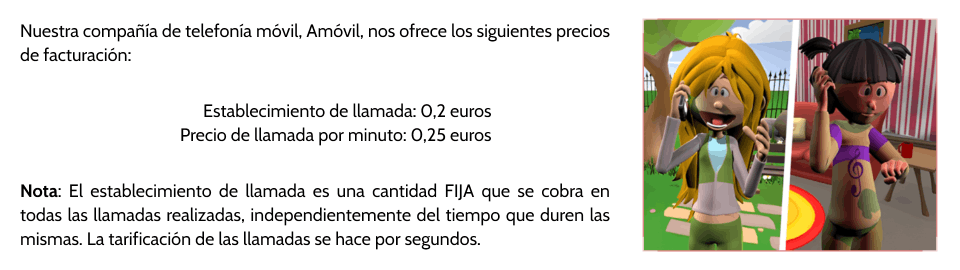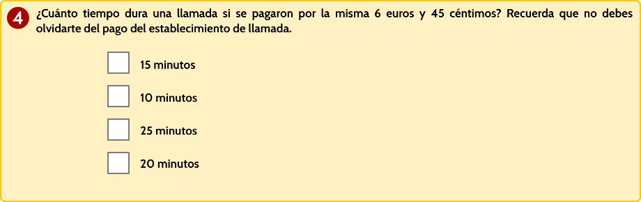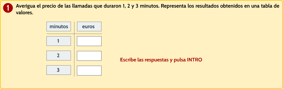 - Respuesta abierta. Se calcula el precio de una llamada de un minuto, dos minutos y el tercer valor puede ser 3, 4 o 5 minutos.