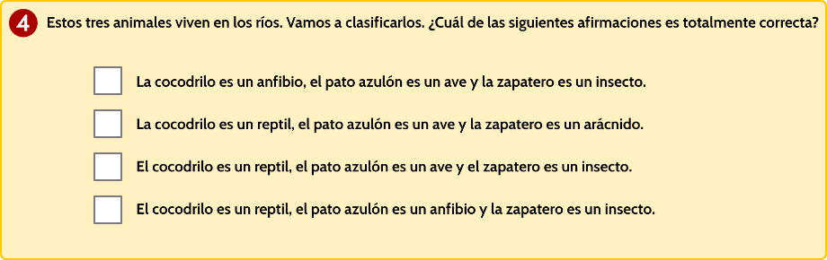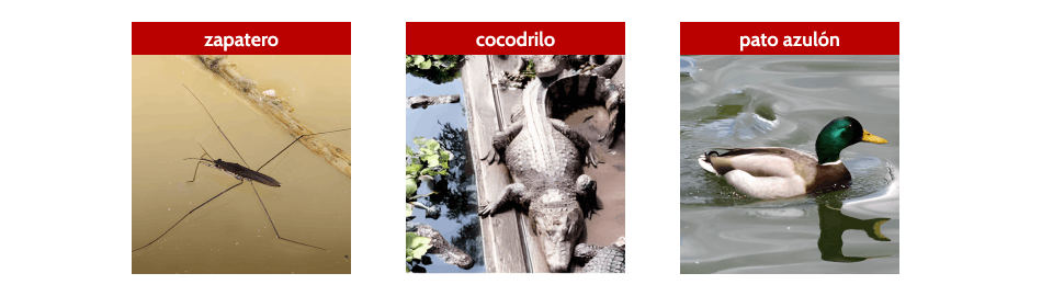 - Tres fotografías de tres animales acuáticos que han de clasificar.
