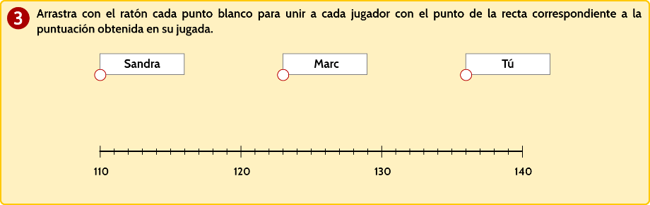 - Se pide al alumno que asocie tres cantidades numéricas con su representación en la recta.