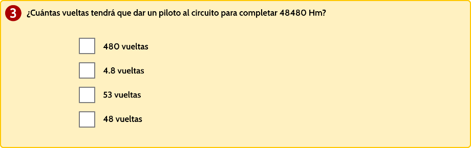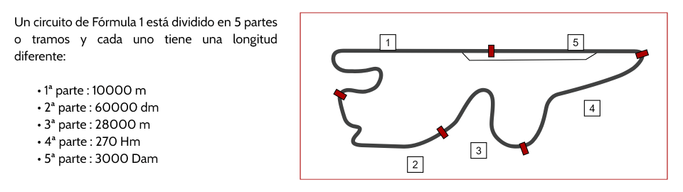 En el contexto de una carrera de fórmula 1, se prueben las competencias necesarias para comparar medidas diferentes, utilizar el Sistema Métrico Decimal y hacer operaciones.