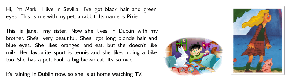 - Mark se presenta y habla de su hermana Jane y sus mascotas.
