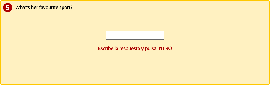 - Respuesta abierta. Hay cuatro opciones para el deporte favorito de Jane (basketball, voleyball, tennis, swimming).