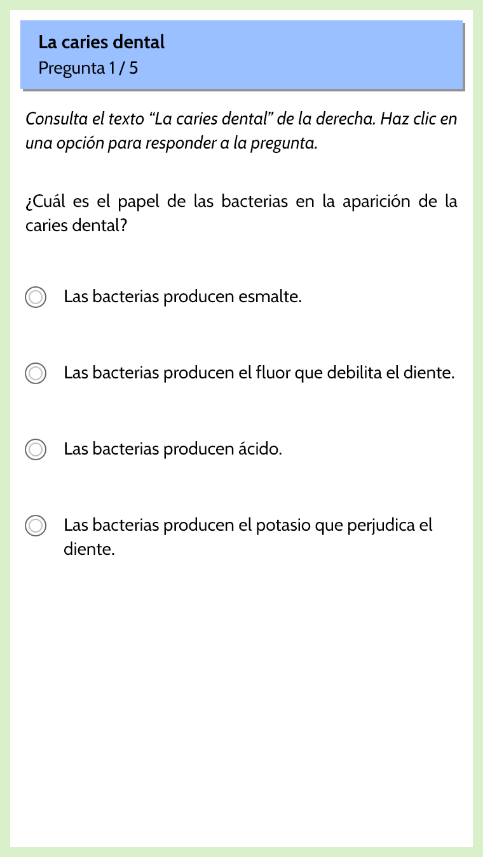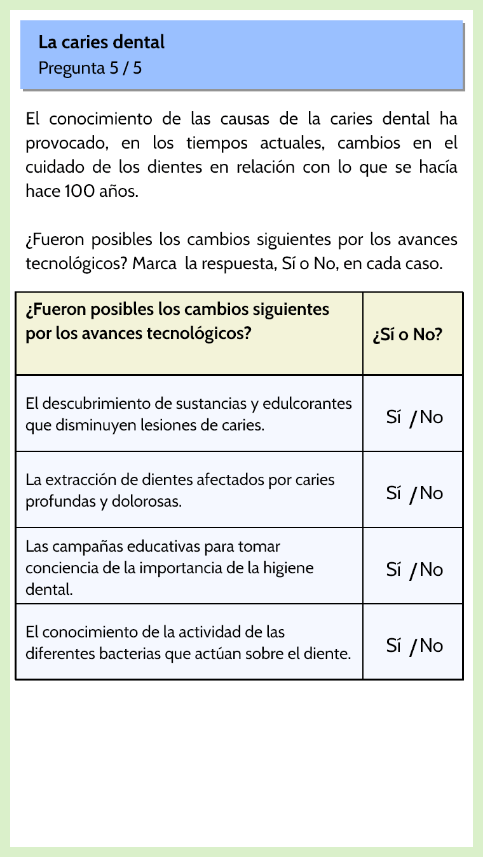 - Texto informativo y una imagen orientativa vinculado a las dos primeras preguntas.