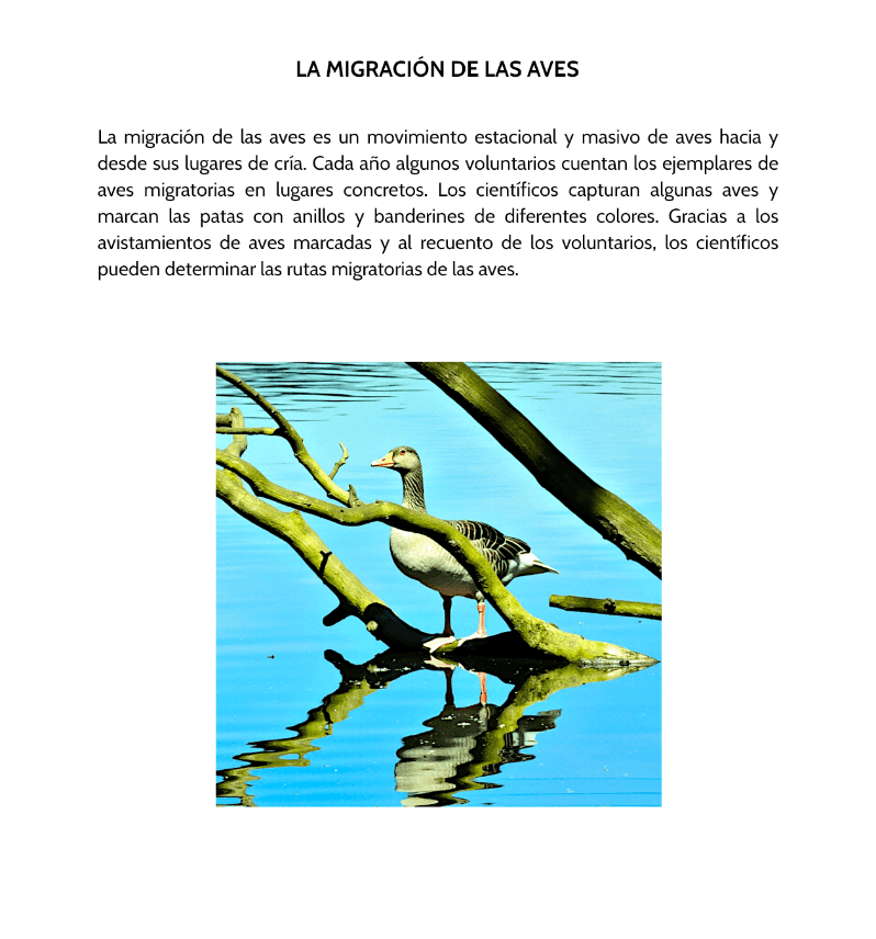 Partiendo de una breve descripción de lo que es la migración de las aves y cómo se pueden determinar las rutas migratorias se abordan competencias que permiten explicar fenómenos e interpretar datos científicamente.