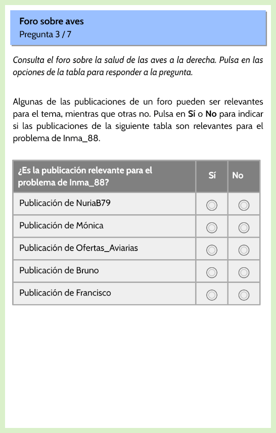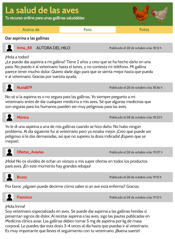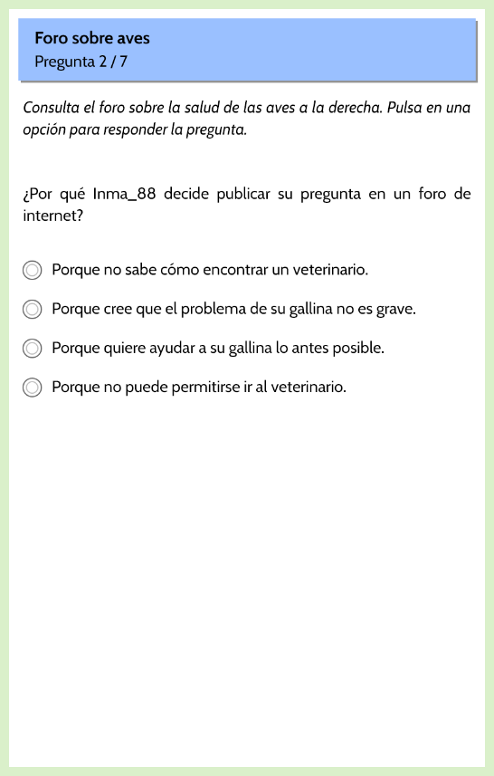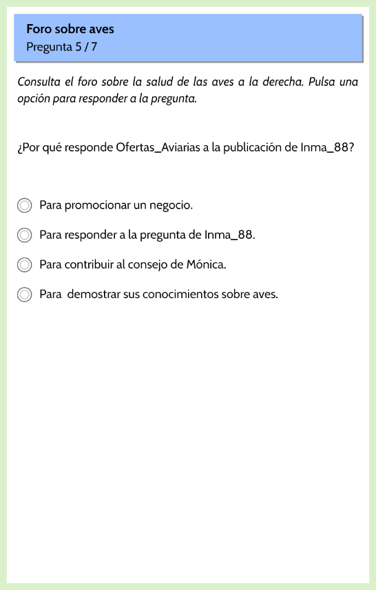 Analizar publicaciones en un foro sobre aves, interpretando información literal e implícita para comprender el contexto y las intenciones de los participantes. Desarrolla habilidades de inferencia, evaluación crítica y síntesis de información proveniente de múltiples fuentes.