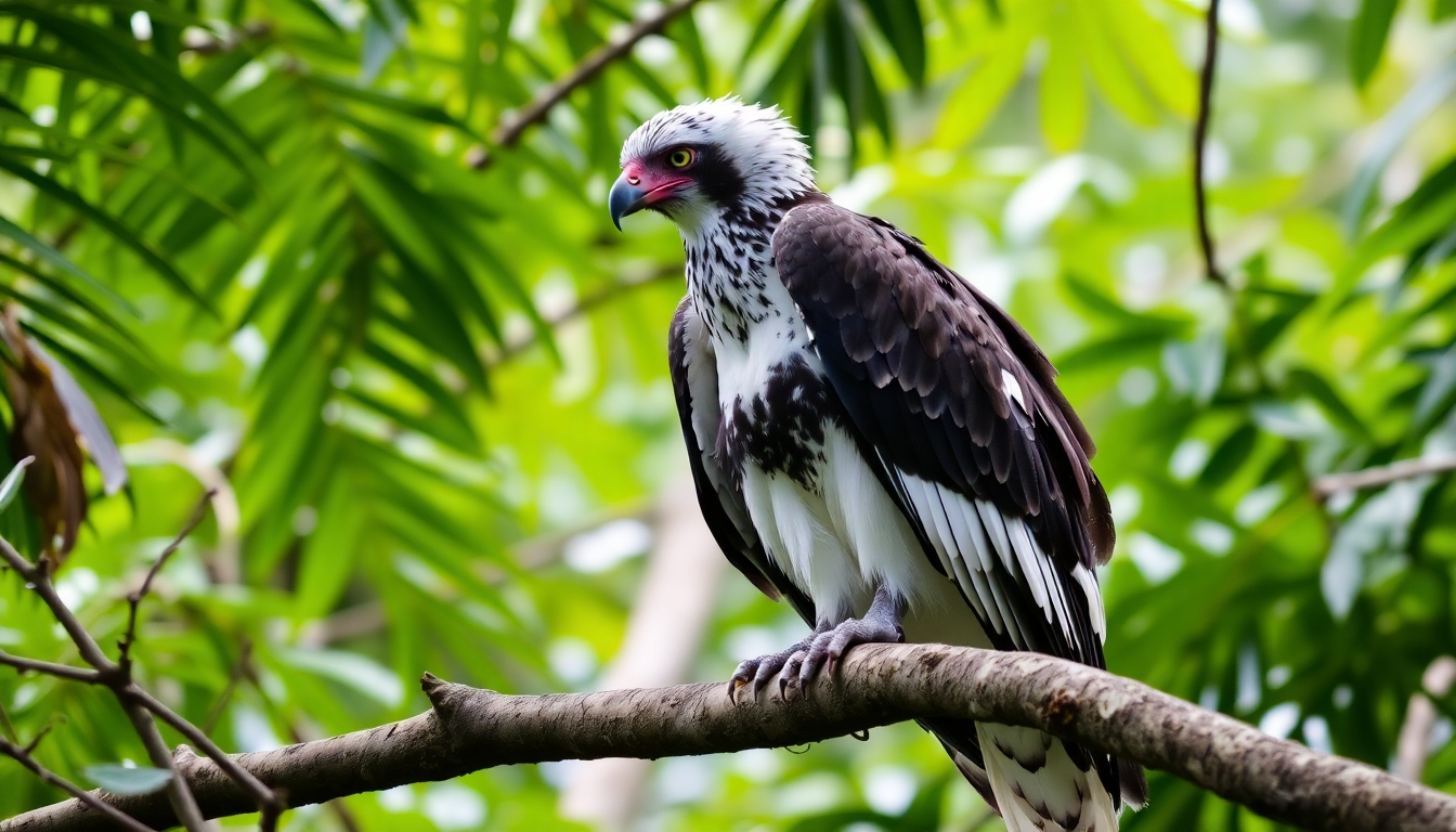 El águila harpía es una de las aves rapaces más poderosas y grandes del mundo, dominando los cielos de la selva tropical americana. Se distribuye desde el sur de México hasta el norte de Argentina, aunque su presencia se ha reducido significativamente debido a la deforestación y la caza. Prefiere los bosques húmedos y densos, donde puede cazar a sus presas, que incluyen monos, perezosos, zarigüeyas y otros mamíferos de tamaño mediano, además de aves e incluso reptiles como iguanas. Su plumaje es predominantemente negro en la parte superior y blanco en la inferior, con una distintiva cresta de plumas en la cabeza que puede erigir para mostrarse amenazante. Las garras del águila harpía son enormes, capaces de ejercer una presión de más de 50 kilogramos por centímetro cuadrado, lo que le permite sujetar y matar a sus presas con facilidad.