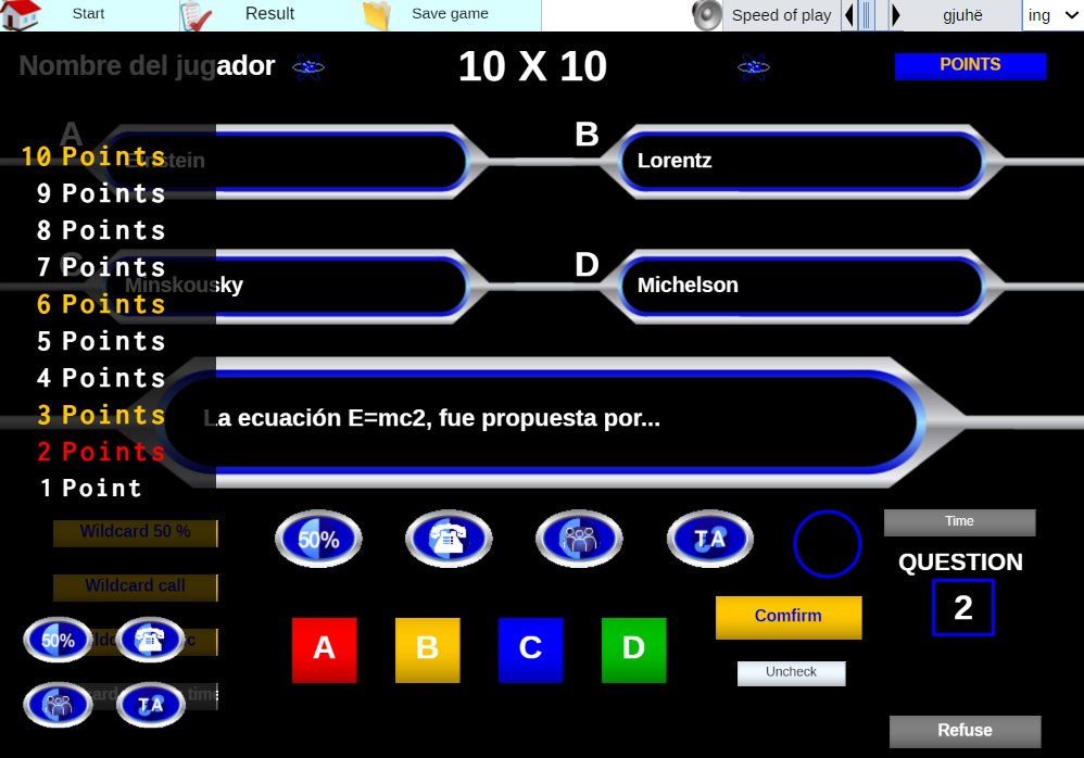 Si tenemos en cuenta que el idioma de la interfaz del juego es personalizable y que las preguntas también se pueden poner en la lengua que se desee, un juego puede utilizarse de forma completa diferentes idiomas o ser este aspecto personalizado por el usuario.