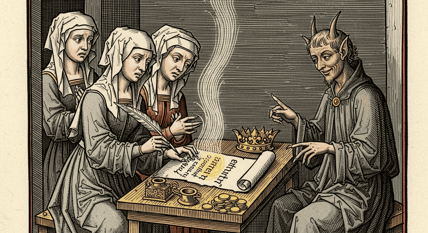 de herejía. La idea de un pacto explícito con el diablo se convirtió en el principal motivo para acusar a magos y brujas de herejes. Este pacto implicaba la renuncia a Dios y la entrega del alma a Satanás a cambio de poderes sobrenaturales. Este cambio conceptual fue crucial, ya que elevó el crimen de brujería de una mera práctica supersticiosa a una traición contra la fe cristiana, merecedora de los castigos más severos. Los tribunales eclesiásticos, y más tarde los seculares, comenzaron a ver la brujería como una secta diabólica organizada, con sus propios ritos y jerarquías, bajo la dirección del príncipe de las tinieblas.