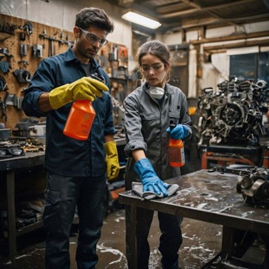 Más allá de la limpieza doméstica, los desengrasantes y disolventes también encuentran numerosas aplicaciones en el mantenimiento de vehículos y equipos. Por ejemplo, en la cadena de la bicicleta, motores y baterías de automóviles, y herramientas mecánicas.