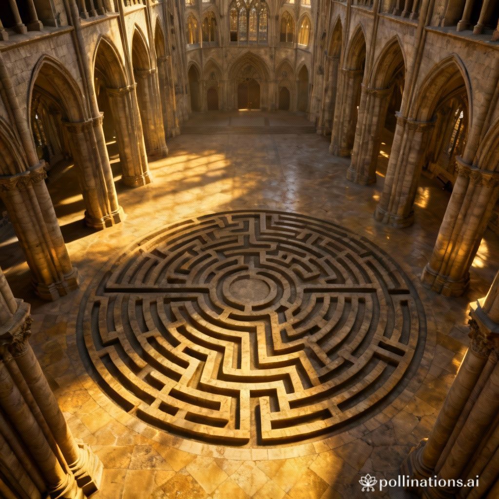 Caminar por la nave es caminar dentro de una ecuación. La relación entre la altura y la anchura a menudo responde a la Proporción Áurea (Phi, 1.618...), considerada la firma matemática de la perfección natural. Pero si miramos al suelo, encontramos uno de los símbolos más potentes y malentendidos: el laberinto.