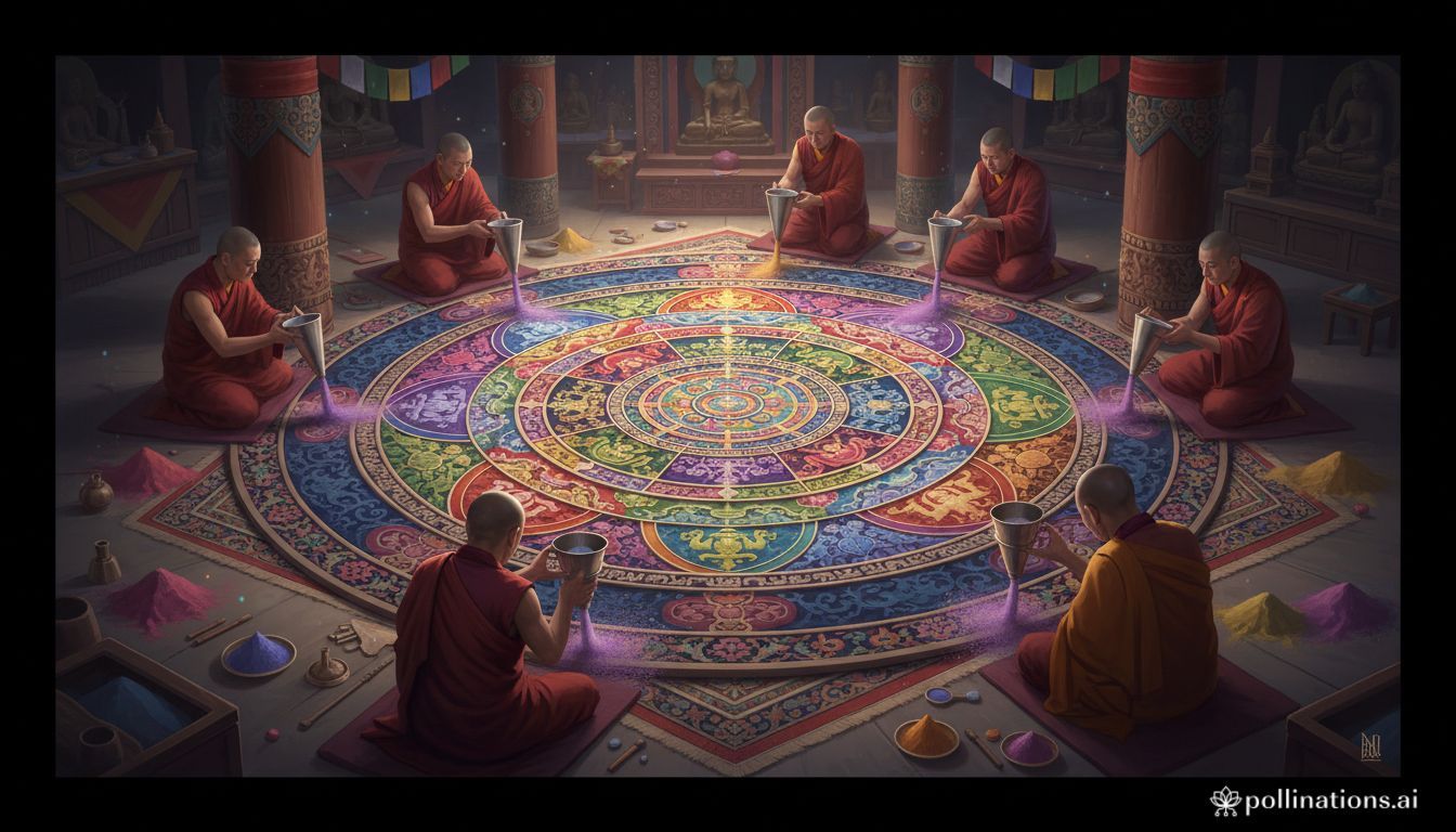 Es fascinante pensar que un monje en el Tíbet creando un mandala de arena y un chamán navajo creando una pintura de arena curativa están utilizando la misma "tecnología espiritual" geométrica para sanar y orientar, sin haberse conocido jamás.