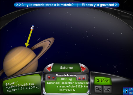1. El peso y la gravedad 1Cuando accede al interactivo aparece una pantalla como la siguiente: