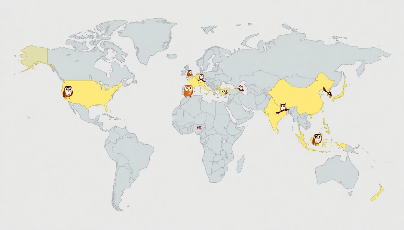 Las aves rapaces nocturnas se encuentran en casi todos los continentes del mundo, con la notable excepción de la Antártida. Su capacidad para adaptarse a una amplia variedad de hábitats, desde densos bosques y praderas abiertas hasta desiertos áridos y paisajes urbanos, es notable. La distribución de especies específicas está determinada por factores como la disponibilidad de presas, la presencia de sitios de anidación adecuados y la competencia con otras aves rapaces y depredadores.