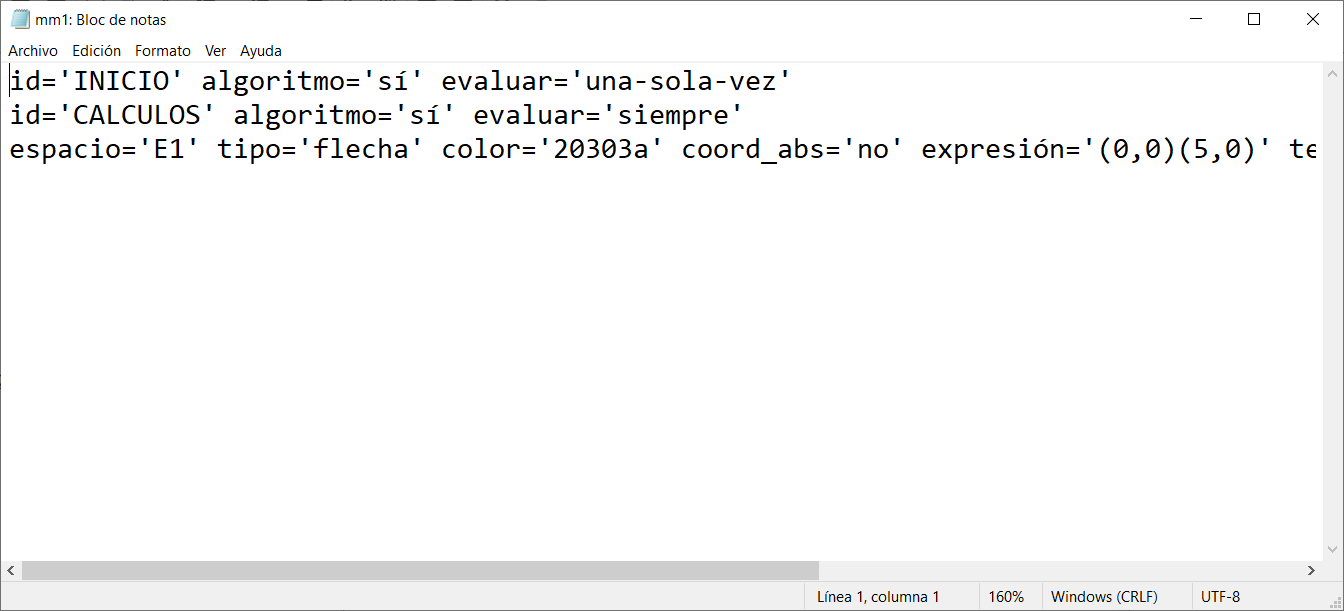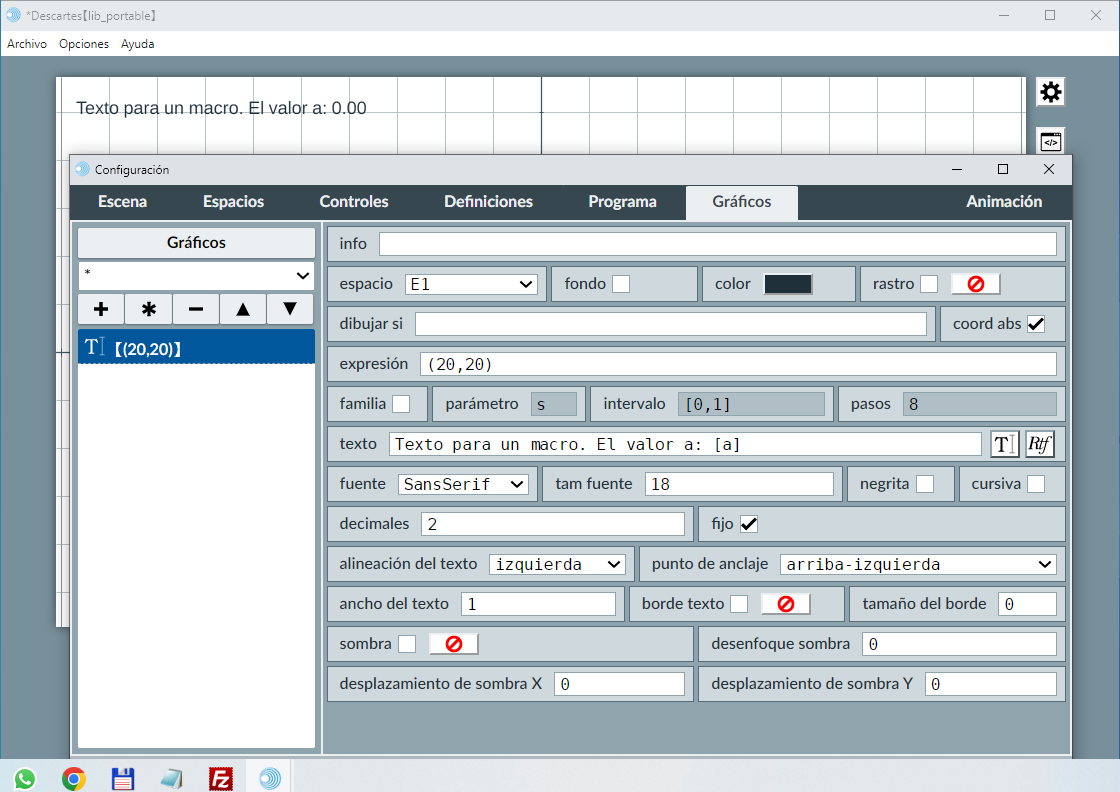 Paso 2. En editor de Descartes, en la opción Archivo elegimos, Exportar a macro de Descartes. Guardamos el archivo con el nombre mm1.txt el macro y cuyo código será: