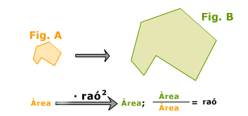 Si dues figures A i B són semblants, el quocient entre l'àrea de B i l'àrea d'A és el quadrat de la raó de semblança de la figura B sobre l'A.