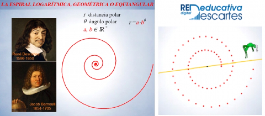 Inicialmente René Descartes (1596-1650) fue quien se planteó la determinación de una curva que también fuera equiangular, pero que el ángulo fuera el que previamente se deseara, es decir, una generalización de lo que acontece en la circunferencia. Jakob Bernoulli (1654-1705) también la analizó y la denominó “Spira mirabilis” o espiral maravillosa, y de acuerdo con sus propiedades, en su epitafio hizo poner “Eadem mutata resurgo”, es decir, “Mutante y permanente vuelvo a resurgir siendo el mismo”. En este recurso podrás comprobar el significado de esta expresión y experimentar que: