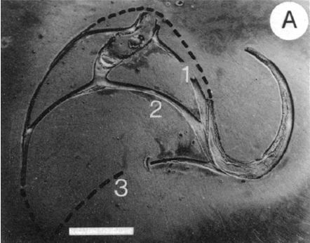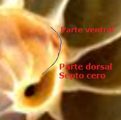 - La espiral que modela la pared ventral no modela al labio dorsal. Observad como la parte correspondiente a esta espiral que se ha dibujado en la imagen mediante puntos no se ajusta a dicho labio.