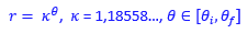 Partamos de que la espiral logarítmica cordobesa[1] que modela la pared ventral (representada en color azul en las imágenes y escenas) viene dada en coordenadas polares por: