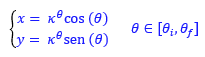 es decir, que ubicamos su polo en el origen de coordenadas. Adicionalmente denotaremos el ángulo inicial de la espiral como θi, y como θf el ángulo final correspondiente a la boca de la concha.