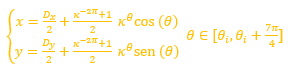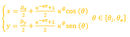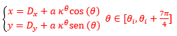 Con la notación anterior, entonces el polo de la espiral cordobesa que aproxima al labio dorsal se situaría en D(0.035, 0.080) y su ecuación paramétrica sería: