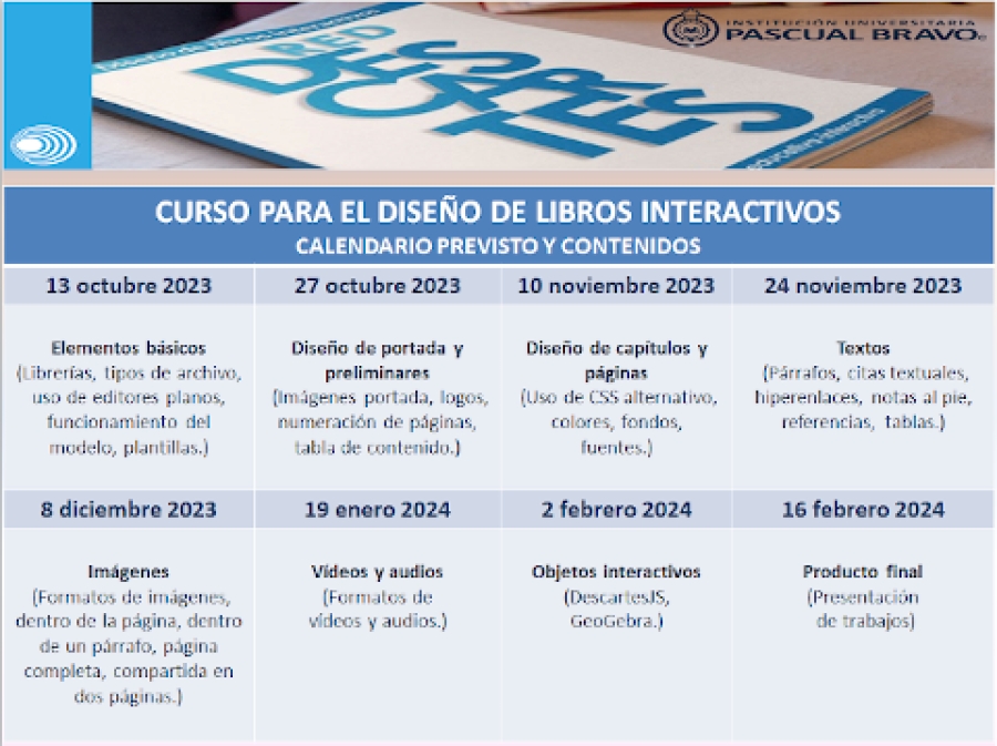 El curso comienza el próximo día 13 de octubre y finaliza el 16 de febrero de 2024, impartiéndose las sesiones de 7 AM a 8 AM en el horario oficial de Colombia, de acuerdo al siguiente calendario previsto y contenidos a tratar: