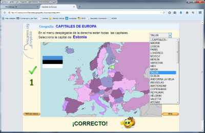 La introducción del control tipo menú ha sido debida a que vamos a elaborar una nueva versión de la utilidad basada en la selección del nombre de la capital en un menú desplegable que muestra todas las capitales administrativas del continente; en lugar de en el evento click sobre un punto en un gráfico como sucedía en la primera versión. Así conocemos si la persona que usa la utilidad ha memorizado el nombre de la capital del país y puede identificar en un mapa mudo el lugar donde está esa capital. Los resultados obtenidos con este cambio son los que pueden observarse siguiendo el siguiente enlace