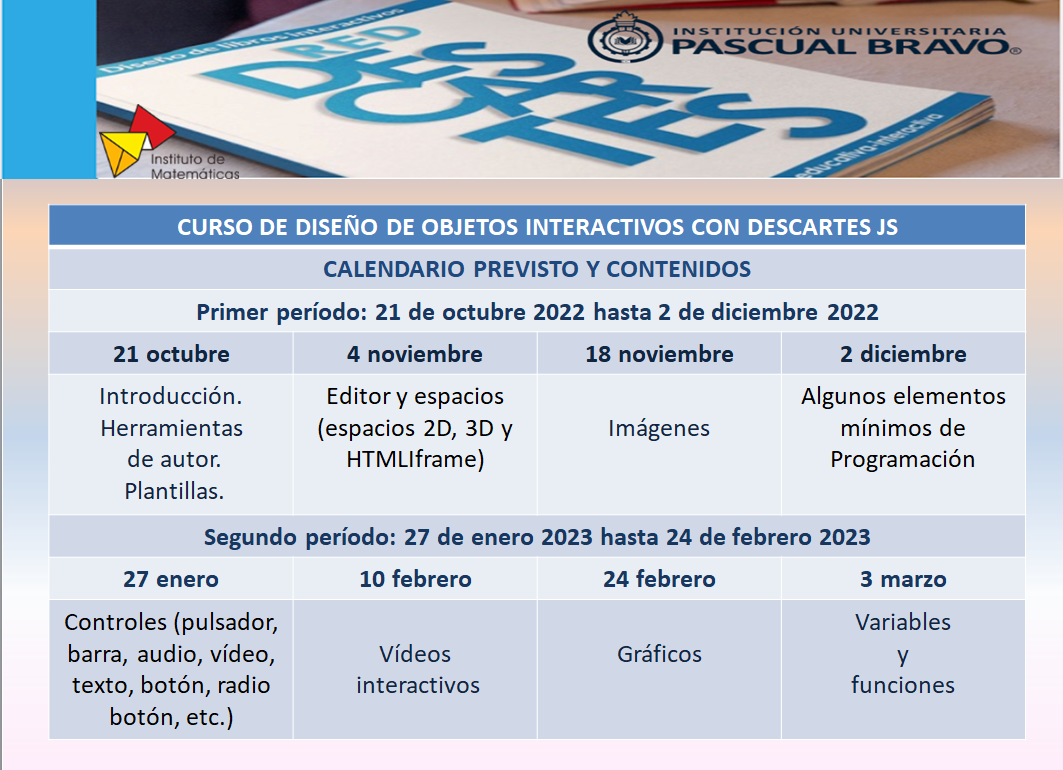 El próximo viernes, 21 de octubre, comienza la III Edición del Curso para el Diseño de Objetos Interactivos con la Herramienta de Autor DescatesJS, que forma parte del programa de Educación Abierta de RED Descartes, con participantes de siete países de habla hispana e inglesa, con docentes y profesionales de la educación que comprenden las etapas educativas de primaria, secundaria, bachillerato y universidad, así como una amplia gama de especialidades.