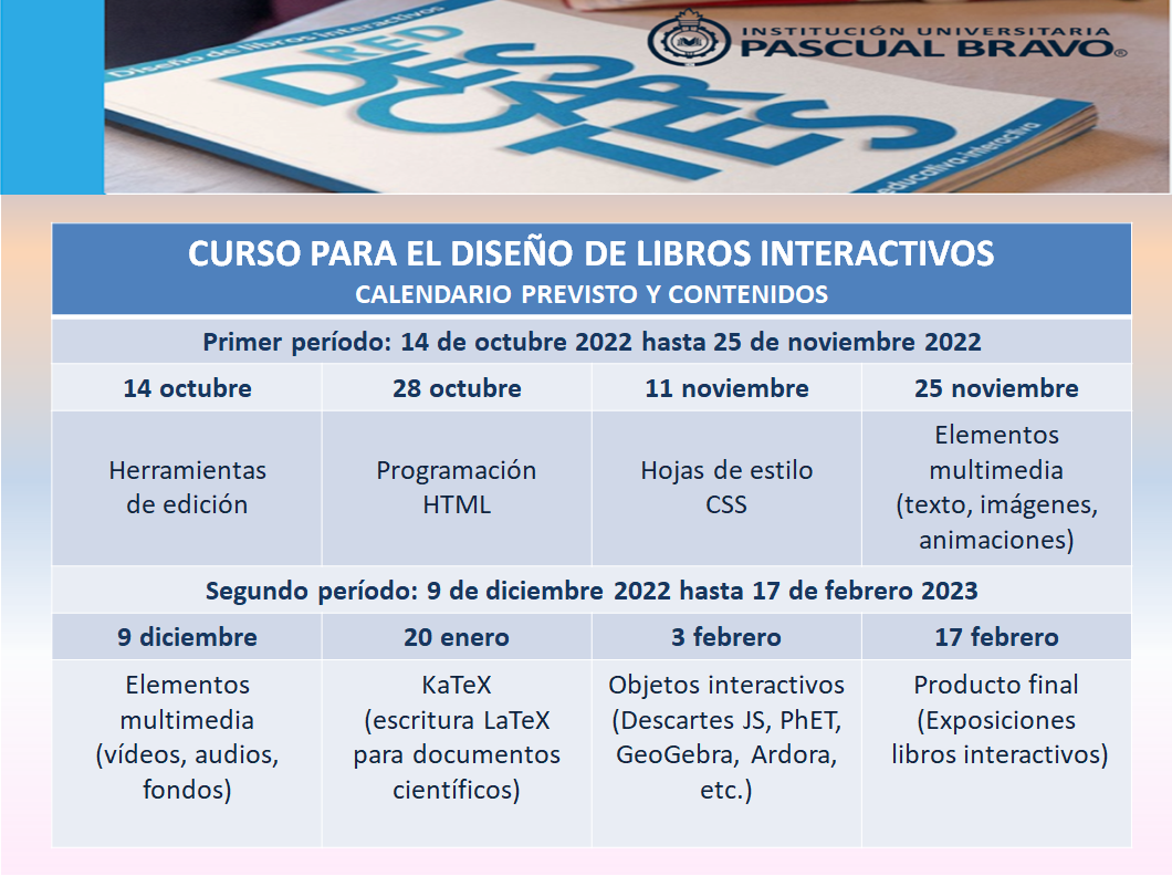 El próximo viernes, 14 de octubre, comienza la IV Edición del Curso para el Diseño de Libros Interactivos, que forma parte del programa de Educación Abierta de RED Descartes, con participantes de once países de habla hispana e inglesa, con docentes y profesionales de la educación que comprenden las etapas educativas de primaria, secundaria, bachillerato y universidad, así como una amplia gama de especialidades.