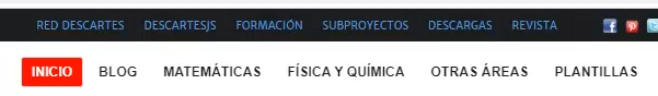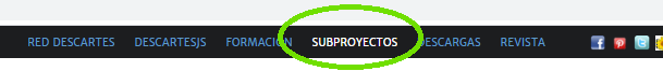 Un primer menú que te dirigen a las páginas: presentación, herramienta DescarteJS, formación, subproyectos, descargas y revista.