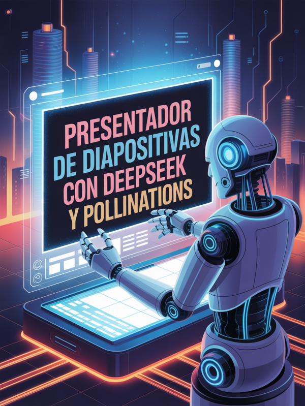 Esta herramienta permite crear presentaciones de diapositivas en HTML5, generando imágenes y textos con las API de pollinations.ai.