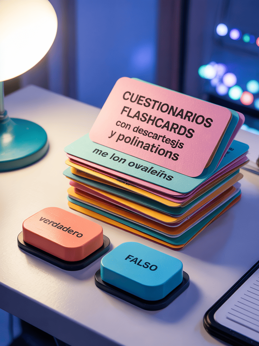 Esta herramienta permite generar cuestionarios de selección múltiple en español, inglés o francés, a partir de un tema ingresado por el usuario, con 5, 10, 10, 15 o 20 preguntas. Las preguntas del cuestionario van acompañadas de una imagen generada por Pollinations.AI (se sugiere esperar un tiempo prudencial, hasta que se generen las preguntas con sus respectivas imágenes). Una vez se genera el cuestionario, se habilta un botón para descargarlo y usarlo en local.