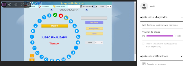 Hemos podido comprobar que los juegos didácticos del Proyecto AJDA, también se pueden utilizar e integrar perfectamente a través de vídeo-conferencia, ya que estos pueden ser compartidos sin ningún tipo de problema entre los diferentes participantes y se pueden desarrollar sin problemas.