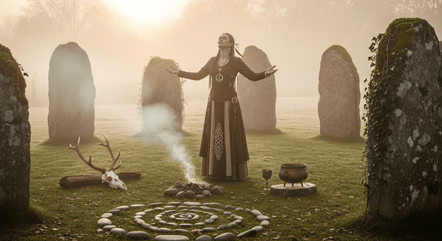 cuyo nombre puede significar "Gran Reina" o "Reina Espectral", es una de las figuras más complejas, asociada con la guerra, la muerte, la profecía y la transformación. Se la representa a menudo en armadura o tomando la forma de un cuervo o una corneja en el campo de batalla, infundiendo fuerza e ira en los guerreros y vaticinando los vencedores y vencidos. Curiosamente, la Morrigan también está ligada a la fertilidad, la sensualidad telúrica y la sexualidad, simbolizando la unión de vida y muerte en el ciclo natural. Otra figura venerable es la Cailleach, una diosa anciana asociada con las estaciones, la creación de paisajes, la fertilidad de la tierra y el ciclo de la vida y la muerte, a menudo vista como la personificación del invierno. Estas deidades y practicantes femeninas celtas, con su profundo conocimiento de la naturaleza, la adivinación y la curación, representaban una forma de poder femenino intrínsecamente ligada al orden cósmico.