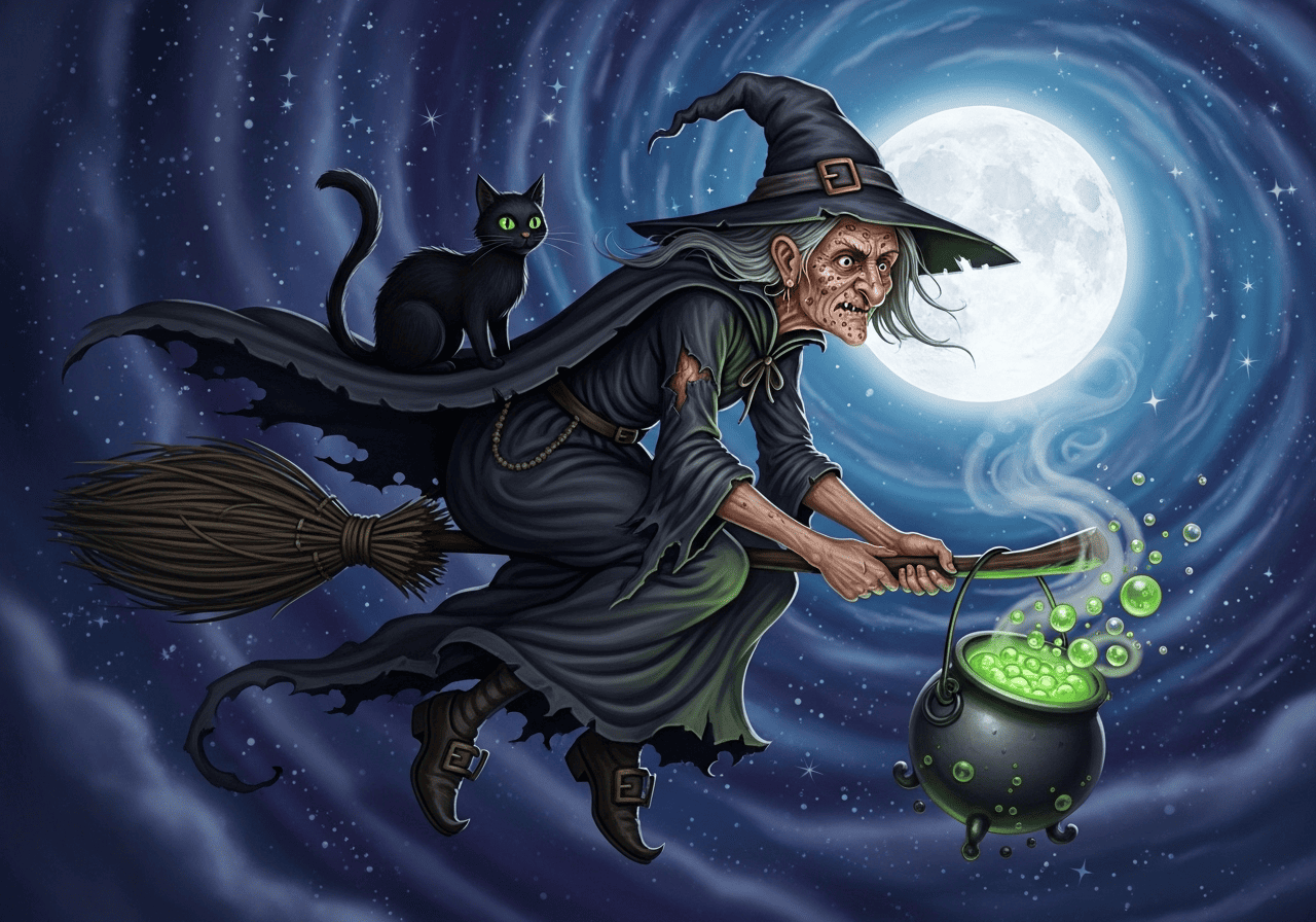 la herejía genuina, los tribunales civiles sí ejecutaron a muchas personas. Sin embargo, la tradición oral en la península ibérica está repleta de relatos sobre brujas que se reunían en aquelarres, volaban por los cielos o realizaban hechizos. Historias como la de las brujas de Zugarramurdi en Navarra, inmortalizada en documentos inquisitoriales y el folclore local, narran encuentros con el diablo y prácticas mágicas. La leyenda de Leonor de Bargota, también en Navarra, cuenta cómo esta bruja volaba al monte Joar para recibir instrucciones del señor de las sombras, dotándola de poderes para curar o maldecir, y se decía que podía provocar tormentas o enfermar el ganado. Estas narraciones se transmitían de generación en generación, enriqueciéndose con el paso del tiempo y añadiendo elementos míticos a la figura de la bruja.