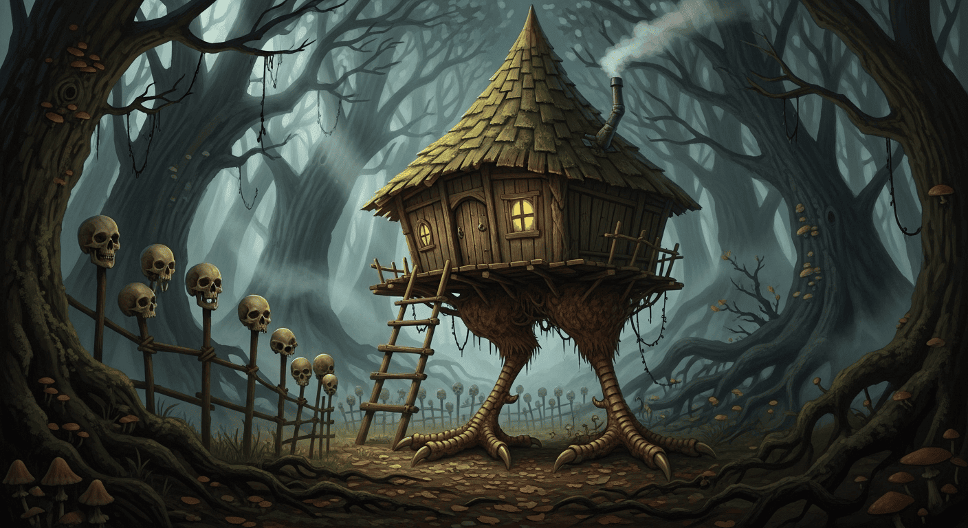Del misterioso folclore eslavo emerge Baba Yagá, una bruja de naturaleza enigmática que ha cautivado a generaciones. Descrita como una anciana huesuda y arrugada con dientes de acero y una pata de hueso, Baba Yagá vive en una choza que se alza sobre dos enormes patas de gallina, la cual puede moverse a voluntad por el bosque. Vuela en un mortero, remando el aire con una escoba para borrar sus huellas. Su carácter es notoriamente ambiguo; puede ser una figura aterradora que devora personas, especialmente niños, pero también una guía espiritual o una ayuda para aquellos que demuestran pureza de corazón o astucia al enfrentarse a ella. La cerca de su cabaña, adornada con cráneos humanos que brillan como velas, y sus sirvientes invisibles, manos espectrales, realzan su aura sobrenatural y su conexión con el ciclo de la vida y la muerte.