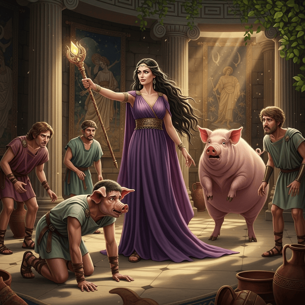Una de las hechiceras más célebres de la mitología griega es Circe, hija del dios del sol Helios y la oceánide Perseis. Residente de la isla de Eea, Circe es ampliamente conocida por su aparición en la epopeya homérica, la Odisea, donde demuestra su formidable habilidad para transformar a los hombres en animales mediante pociones mágicas y su vara. Los desventurados compañeros de Odiseo se convirtieron en cerdos bajo su influjo, un destino del que el héroe solo escapó gracias a la intervención divina de Hermes y una hierba protectora llamada moly. A pesar de su reputación de transmutar a quienes la ofendían, Circe también fue una figura de sabiduría, poseedora de vastos conocimientos en herboristería y medicina, y llegó a ofrecer guía y ayuda a Odiseo en su viaje. Su influencia se extendió a otras figuras míticas, siendo en algunas tradiciones la maestra de Medea.