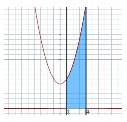 por tanto, $\displaystyle\qquad A= \int_{1}^{4} (x^2+5)\, dx =36 u^2$