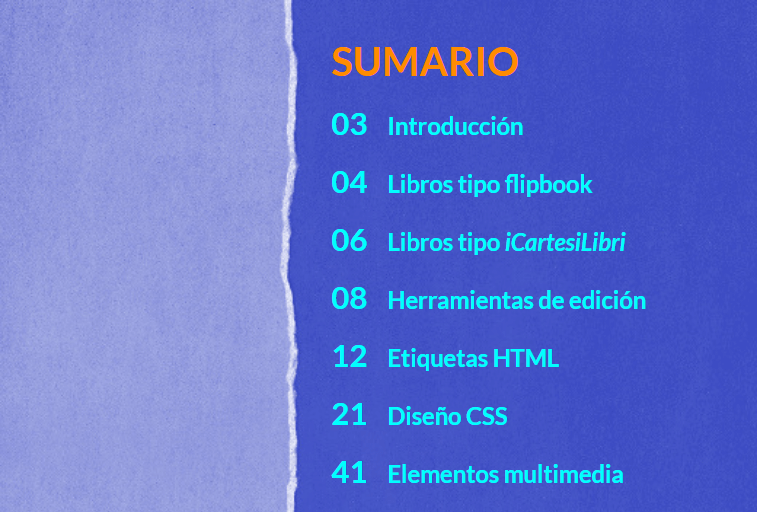 Cuando "hojeas el libro" haciendo clic en las flechas de los extremos, se genera una animación que simula dicho "hojeo".Otros modelos tipo flipbook permiten que el usuario arrastre las páginas desde las esquinas, lo que le da un mayor realismo al libro digital. Presentamos un ejemplo del portal https://flippingbook.com/ en la siguiente página. Sin embargo, la mayoría de estos estos servicios, en línea, tienen algunas desventajas, de las cuales citamos cuatro: pago por el servicio, no inclusión de elementos multimedia como animaciones y vídeos, no es posible descargar los libros para verlos en local y, por último, no es posible embeber objetos interactivos.