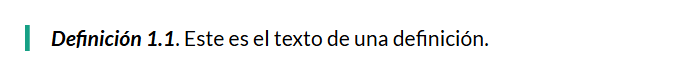 Este tipo de elementos son útiles para enumerar definiciones, lemas y teoremas. Aunque tambien pueden ser útiles para autonumerar ejercicios o ejemplos.