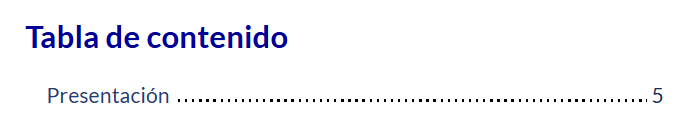 De esta manera se agrega una entrada en la tabla de contenido, sin la necesidad de indicar la página en donde se encuentra, ya que el código del libro busca automáticamente la pagina en donde se encuentra el elemento con el identificador indicado.