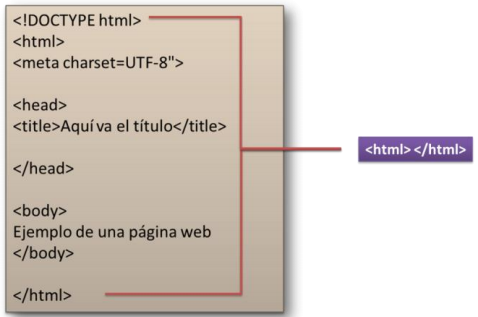 La etiqueta <html> declara que está codificado en este lenguaje y limita el principio y el fin del documento, representa la raíz del documento, y es el padre de todas las demás etiquetas que componen un documento HTML.