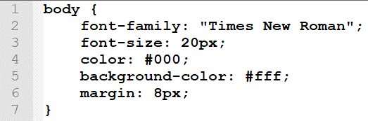 Por defecto, una página HTML tiene asignados valores CSSCSS es el acrónimo de Cascading Style Sheets (Hojas de Estilo en Cascada) tanto en el cuerpo del documento, como en las etiquetas antes descritas. En general, variando de un navegador a otro, los valores para el cuerpo <body> podrían ser: