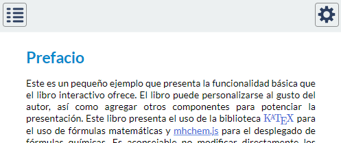 Con las ultimas versiones del libro se incorporo un botón que aparece en la esquina superior derecha el cual tiene el propósito de mostrar algunas herramientas para mejorar la experiencia del libro, así como configuraciones adicionales. Esta funcionalidad se encuentra aún en desarrollo, por lo que actualmente no se muestran herramientas, pero en futuros desarrollos se incluirá una calculadora, para ayudar en los libros de contenido matemático, así como otro tipo de herramientas que puedan mejorar la experiencia de lectura. En la ultima versión del núcleo del libro (9 de febrero de 2021) la única opción con la que se dispone, es un selector para cambiar el tema de colores del libro entre un tema de colores claro y uno oscuro.