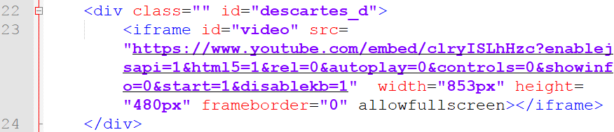 Una vez tengas el código, abres el archivo ivideo.html y cambias el código YouTube (clryISLhHzc) que aparece después de embed/, observa: