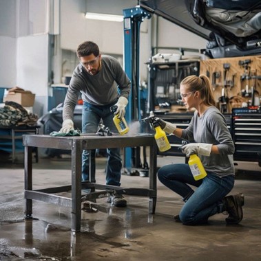 Más allá de la limpieza doméstica, los desengrasantes y disolventes también encuentran numerosas aplicaciones en el mantenimiento de vehículos y equipos. Por ejemplo, en la cadena de la bicicleta, motores y baterías de automóviles, y herramientas mecánicas.